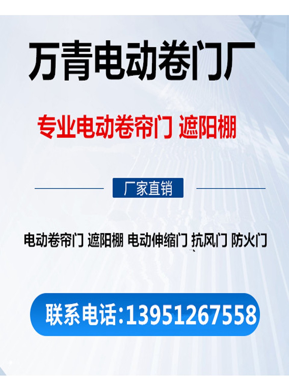 淮安万青电动卷门厂位于淮安市淮阴区香港路果品批发市场北,电话:13951267558 13813345611,万青电动卷门厂是一家集生产、销售、售后维修服务于一体的电动卷门厂家,拥有先进的专业的技术人员和售后服务团队,主要生产经营:电动卷帘门 电动伸缩门 车库门 防火门 工业门 快速卷帘门 道闸等系列产品!多年经营以来,万青电动卷门厂以其良好的信誉和优质的产品在业内和客户当中享有良好的口碑和赞誉! 在未来的发展中,万青电动卷门厂将始终坚持诚信第一 服务第一 质量第一的经营理念和方针,力求把更好的产品和服务带给广大客户! [
